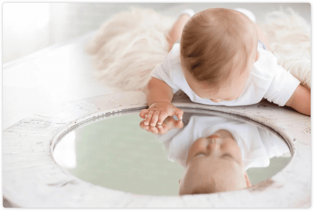 Dreumes en spiegels. Het is een wonderlijke combinatie. En ook ontzettend leerzaam. Kinderen leren afstanden inschatten, ze leren onderwerpen in perspectief te zien en het prikkelt de fantasie. Maar de eerste kennismaking met “dat mensje dat naar mij kijkt en mij nadoet”, is ook vooral grappig en leuk. Een baby’tje (jonger 12 maanden) heeft geen flauw benul van wat er zich afspeelt. Laat staan dat hij weet dat hij naar zijn evenbeeld aan het kijken is. Bij dreumes tussen de leeftijd van 12 en 18 maanden, begint de herkenning van het eigen spiegelbeeld. Hét moment voor gekke spiegelspelletjes. Doe je mee?