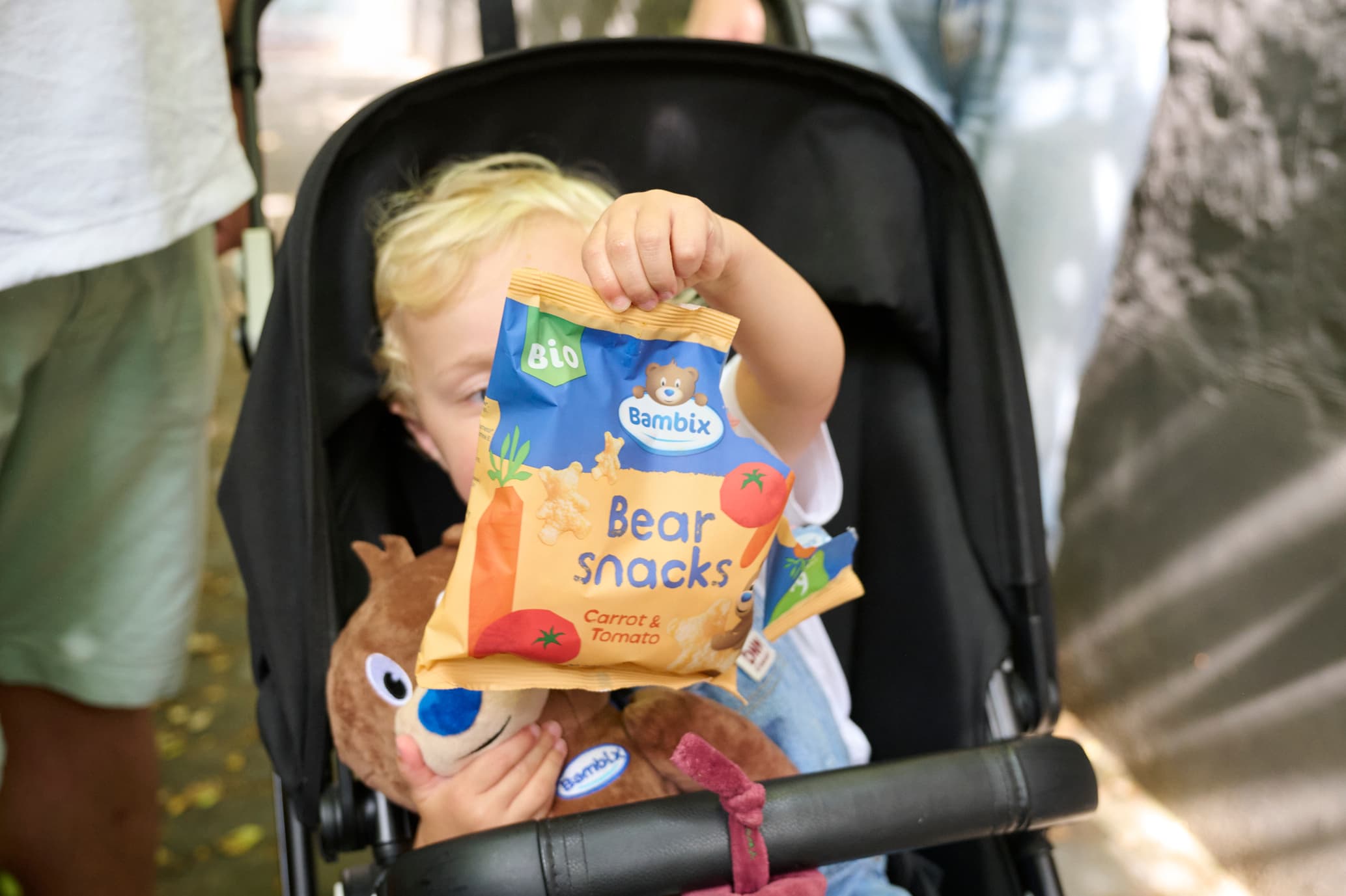 De heerlijke Bambix snacks met tomaat en wortel, in de vorm van schattige beertjes, zijn 100% biologisch, zonder toegevoegde suiker en glutenvrij. Ze zijn speciaal ontwikkeld voor baby's vanaf 6 maanden en zorgen voor een leuke afwisseling in de voeding.